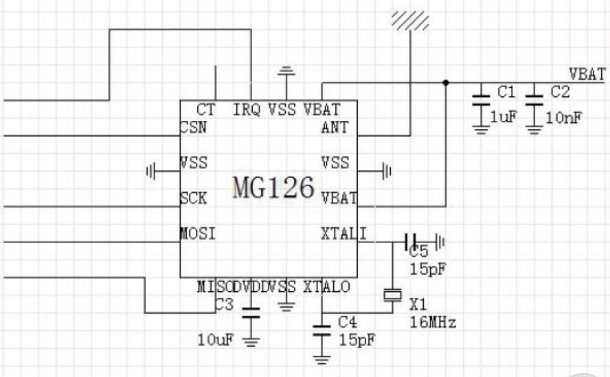 射頻芯片是低功耗、低成本的BLE收發(fā)器,內(nèi)部集成了發(fā)射機(jī)、接收機(jī)、GFSK調(diào)制解調(diào)器和BLE基帶處理。MG126采用QFN3x3封裝,搭配Cortex-M0 MCU和少數(shù)外圍被動(dòng)器件,可以實(shí)現(xiàn)BLE遙控、藍(lán)牙鍵盤等數(shù)據(jù)傳輸應(yīng)用。電源電壓1.9~3.6,可以采用一個(gè)紐扣電池(3.0v)供電,具有3uA待機(jī)電流,20mA@0dBm持續(xù)發(fā)射,18mA持續(xù)接收。