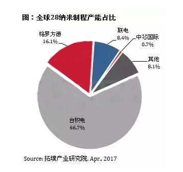 根據(jù)拓璞產(chǎn)業(yè)研究院資料顯示,在此之前中國大陸本土純晶圓代工廠商只有中芯國際量產(chǎn)了28納米制程晶圓,但其28納米晶圓產(chǎn)能全球占比不足1%,與方德(16.1%)、臺(tái)積電(66.7%)、格羅聯(lián)電(8.4%)等相比仍有較大差距。