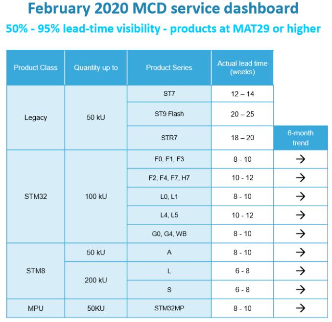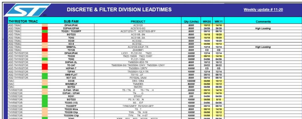 ST最新發(fā)布的產(chǎn)品交期表