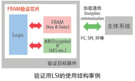 FRAM內(nèi)置嵌入式驗(yàn)證LSI FRAM還在IC卡等安全領(lǐng)域有業(yè)績(jī),提供FRAM內(nèi)置式設(shè)備驗(yàn)證LSI。通用的驗(yàn)證用LSI為MB94R330。