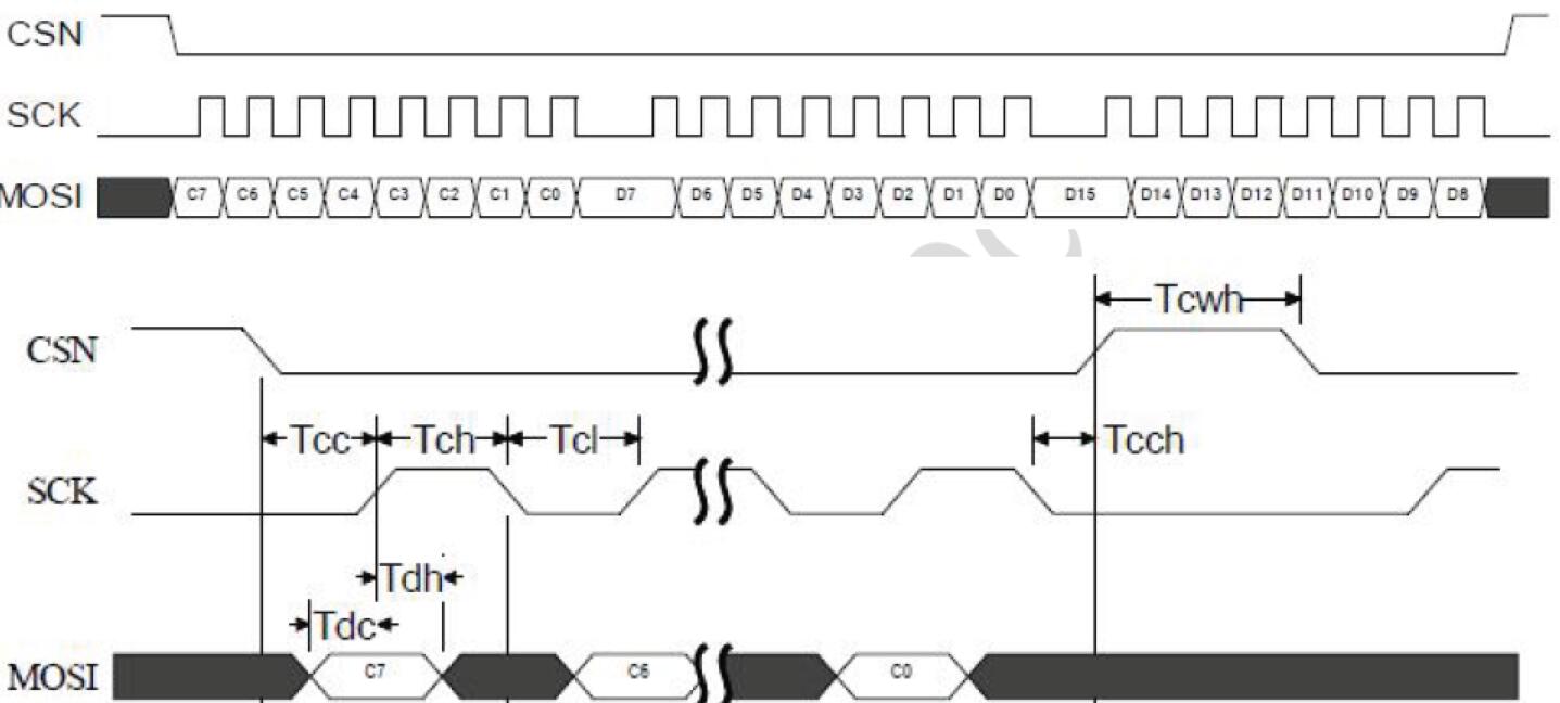 其中MOSI 信號用于輸入和輸出。MCU 可以用3 個(gè)GPIO 模擬SPI,我們提供3 線SPI 的參考C 源碼。