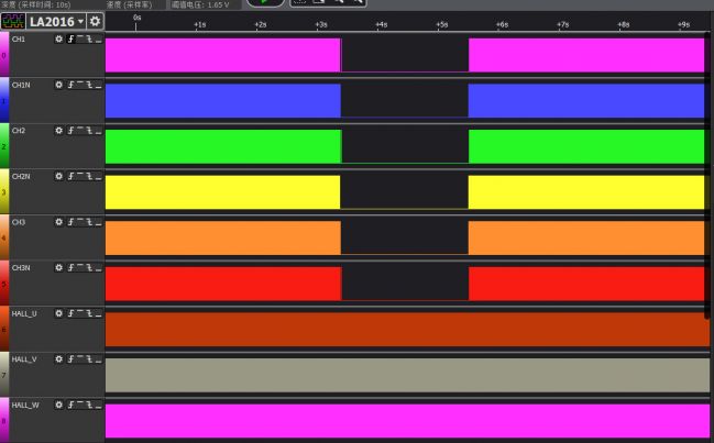 每次PWM換相后都會持續(xù)輸出一段有效電平,等到電流恢復(fù)后PWM波形恢復(fù)正常。